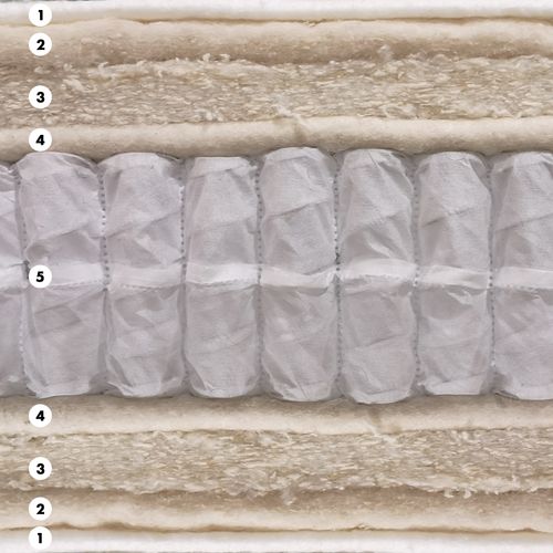 4) Needled cotton & wool: A layer of compacted cotton and wool padding that is resilient and elastic.