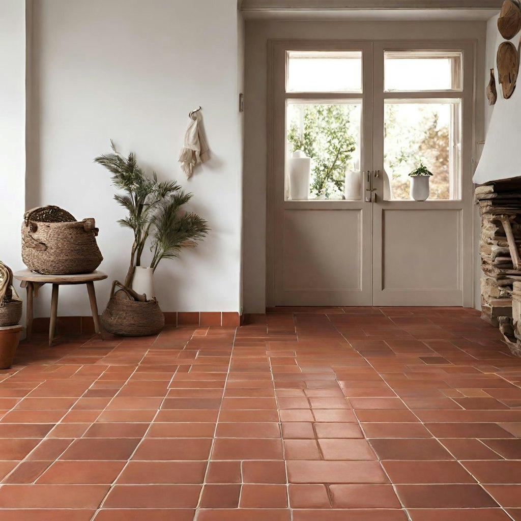 If you want to make a bolder statement with the terracotta colour, adding floor tiles can create a joyful feeling throughout your home.