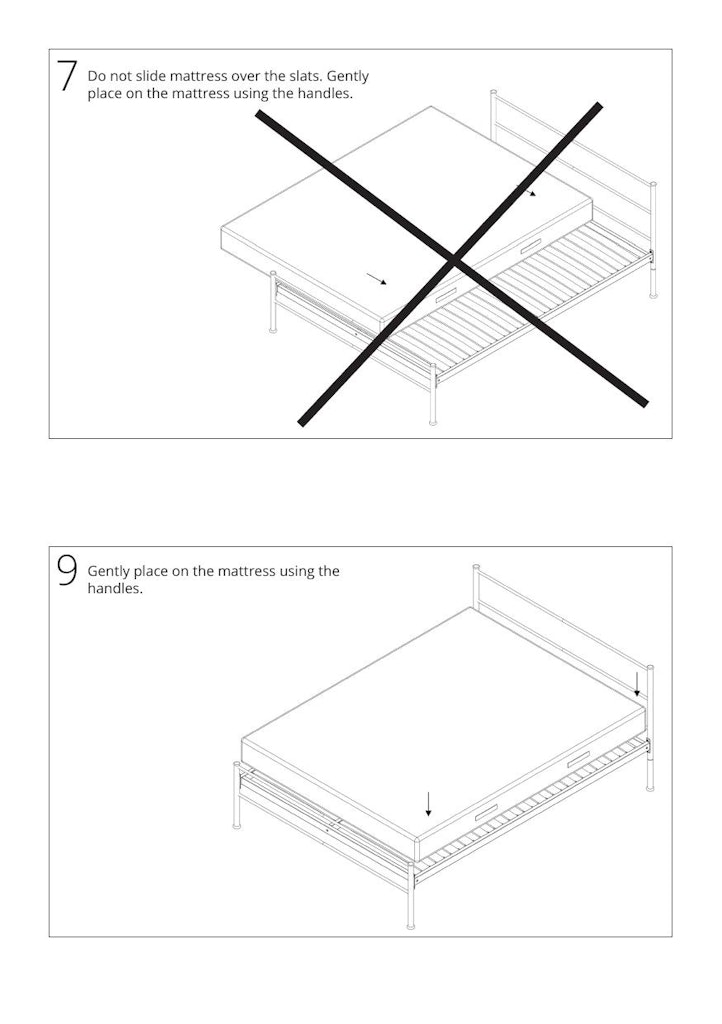 - Step 7 Do not slide mattress over the slats.