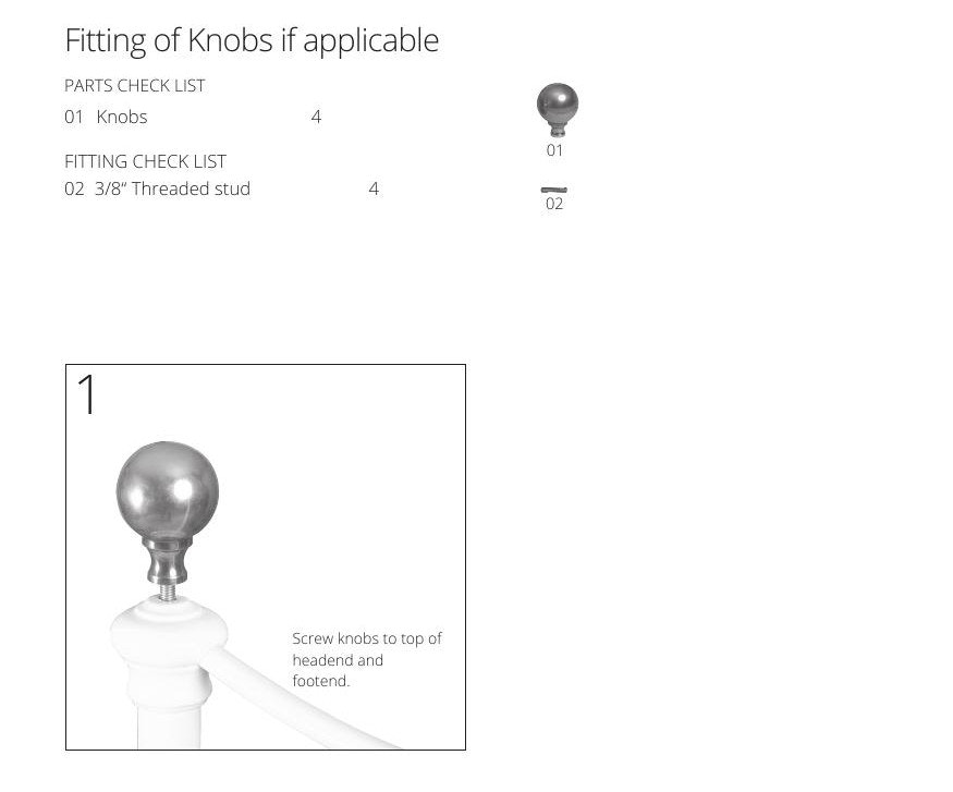 If you bed has both knobs and finials then follow the instructions below.