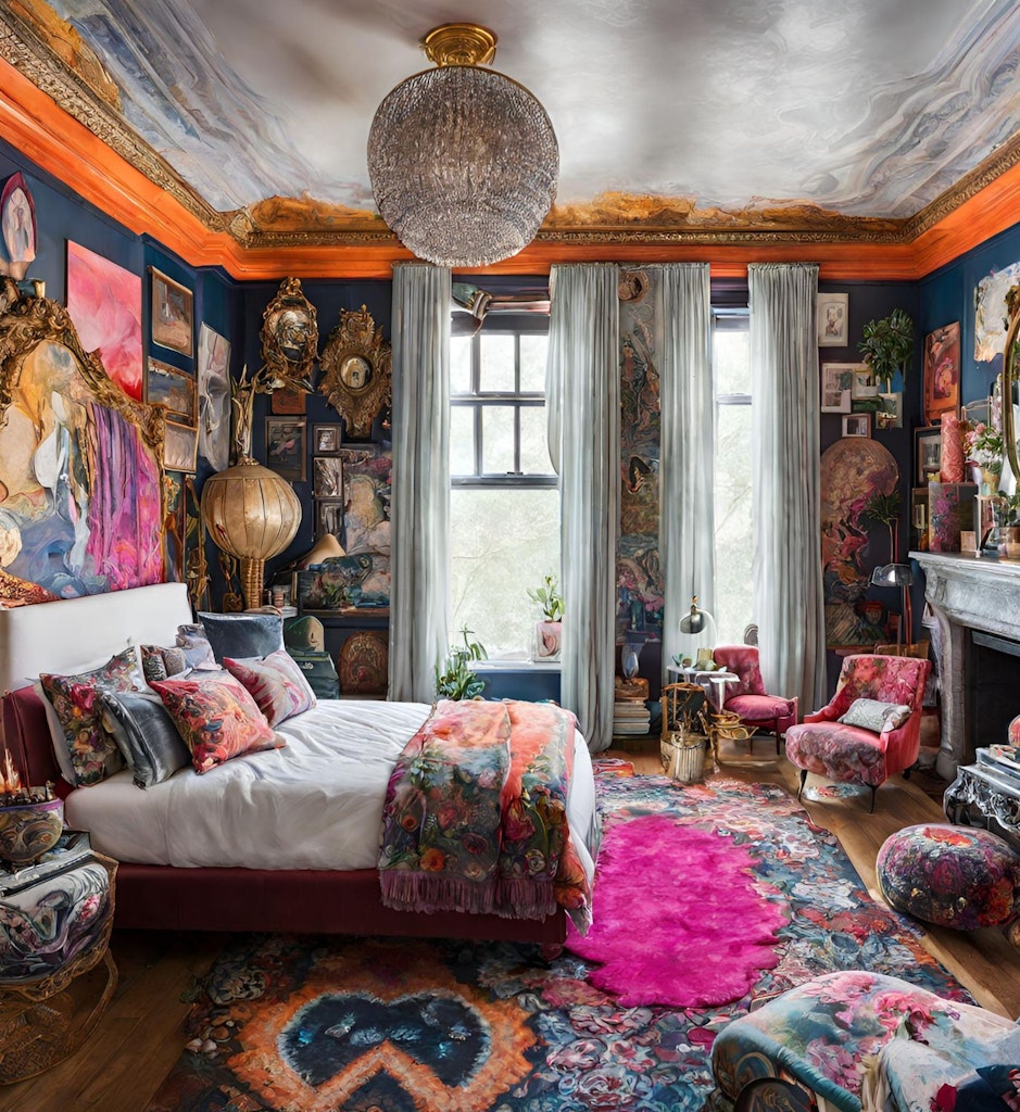 Infuses person and individuality into the space, making it unique. Each element in a maximalist bedroom can be an opportunity for storytelling, developing a visually rich narrative that engages the senses, creates a cosy and welcoming environment rich in visual stimuli. The abundance of elements in a maximalist bedroom transforms it into area that allow individuals and decorators to find their own element of style, and allows them to experiment with design and décor ideas.